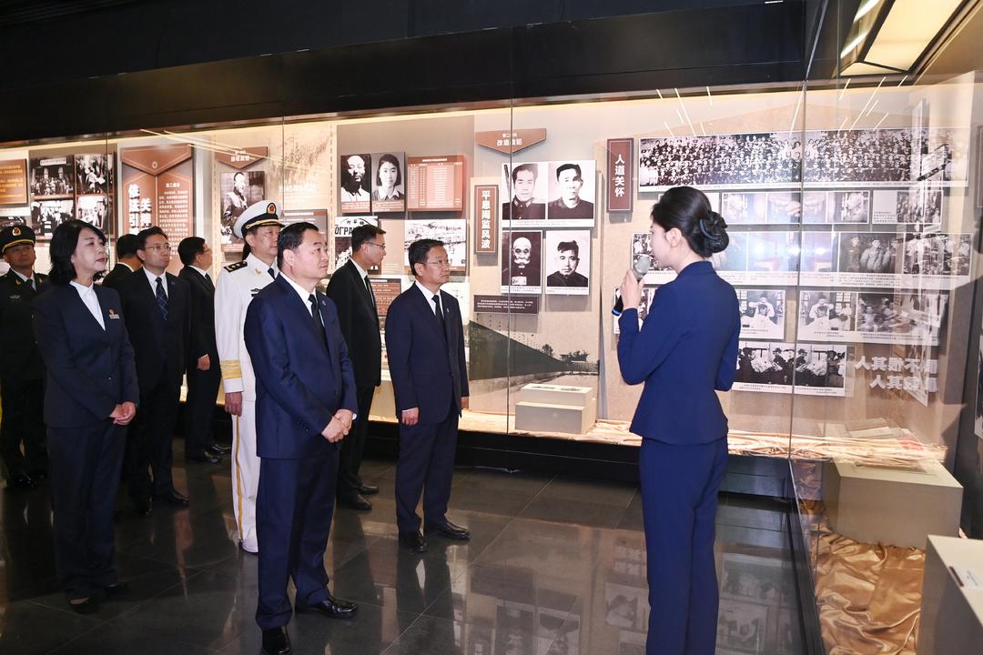 军地领导及各界代表参观“九·一八”历史博物馆展陈和《正义审判——新中国审判日本战犯史实特展》。
