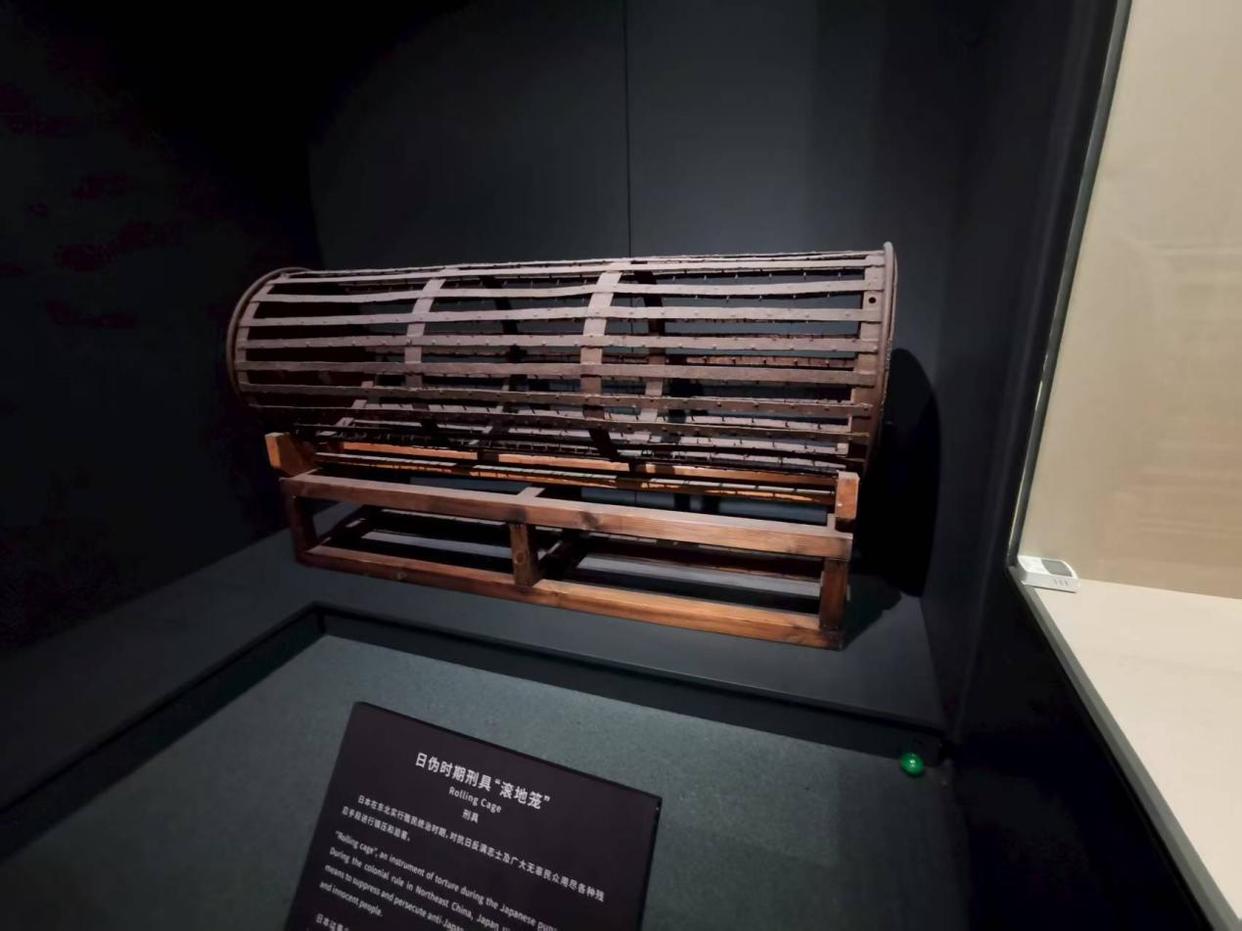 日本侵略者残害东北同胞的手段极其残忍。有一种刑具叫滚地笼,其内壁镶满铁钉,钉尖向内,一侧可打开。他们把中国人五花大绑,塞进笼子里,在地上迅速滚动,里面的人顷刻间皮开肉绽、血肉模糊,几乎没有人能幸存下来。