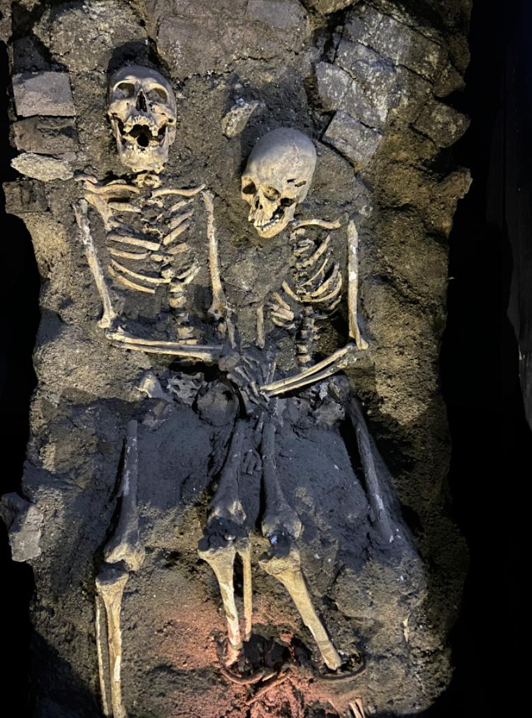 1997年,沈阳东华门附近原日军宪兵队本部地下挖掘出的被铐在一起的男女尸骨(资料图)