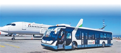 中国宇通电动客车作为摆渡车在索非亚机场运行。 本报记者 禹丽敏摄