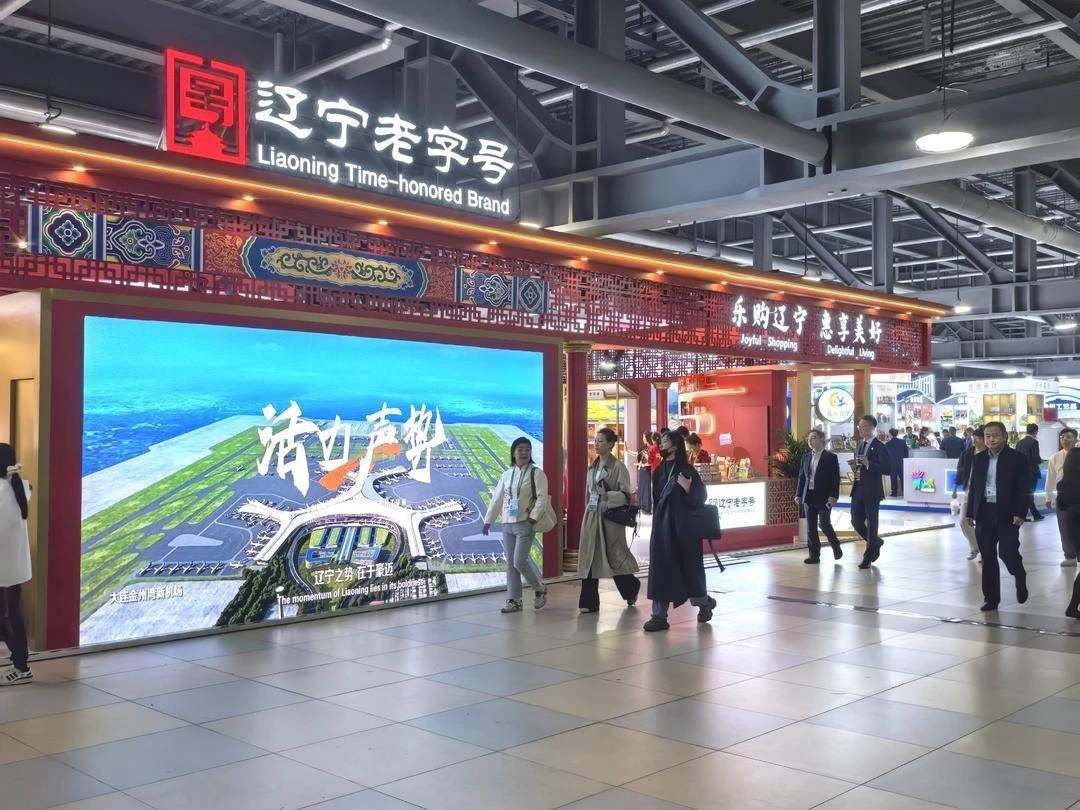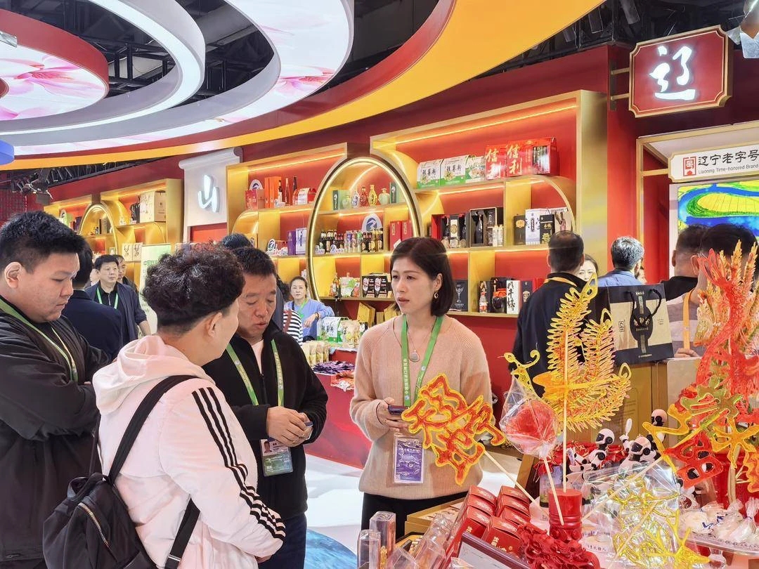 浅棕、墨绿色调下,抽象线条勾勒出山脉轮廓,搭配木质展架,好似山林之景;地面铺着海浪纹理地垫,顶部悬挂着蓝色纱幔,仿佛碧海波涛……走进本届进博会,辽宁展区形象布展紧贴“山海辽宁”,以“乐购辽宁,惠享美好”为主题,集结了大连海鲜、盘锦大米、葫芦岛泳装等200余种“辽宁好物”,集中展示“辽宁制造”的深厚底蕴和现代商业的创新活力。大连展区以“遇见大连 心动无限”为主题,划分“地方名产”“文化传承”“新品潮品”“人文原创”四大展示单元,携特色展品与创新成果集中参展,全方位展现大连的人文底蕴与城市发展活力。