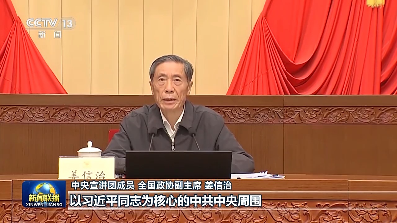 中央宣讲团成员 全国政协副主席 姜信治:人民政协要紧密团结在以习近平同志为核心的中共中央周围,把全会精神落实到各项履职工作之中,把学习成效转化为人民政协事业高质量发展的生动实践,为开创以中国式现代化全面推进强国建设、民族复兴伟业新局面而共同奋斗。