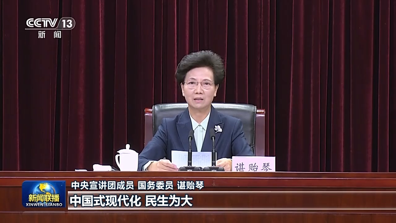 中央宣讲团成员 国务委员 谌贻琴:我们要更加深刻领悟“两个确立”的决定性意义,更加坚定自觉地做到“两个维护”,始终在思想上政治上行动上同以习近平同志为核心的党中央保持高度一致。中国式现代化,民生为大。《建议》坚持尽力而为、量力而行,着眼解决好人民群众急难愁盼的问题,增进人民福祉。